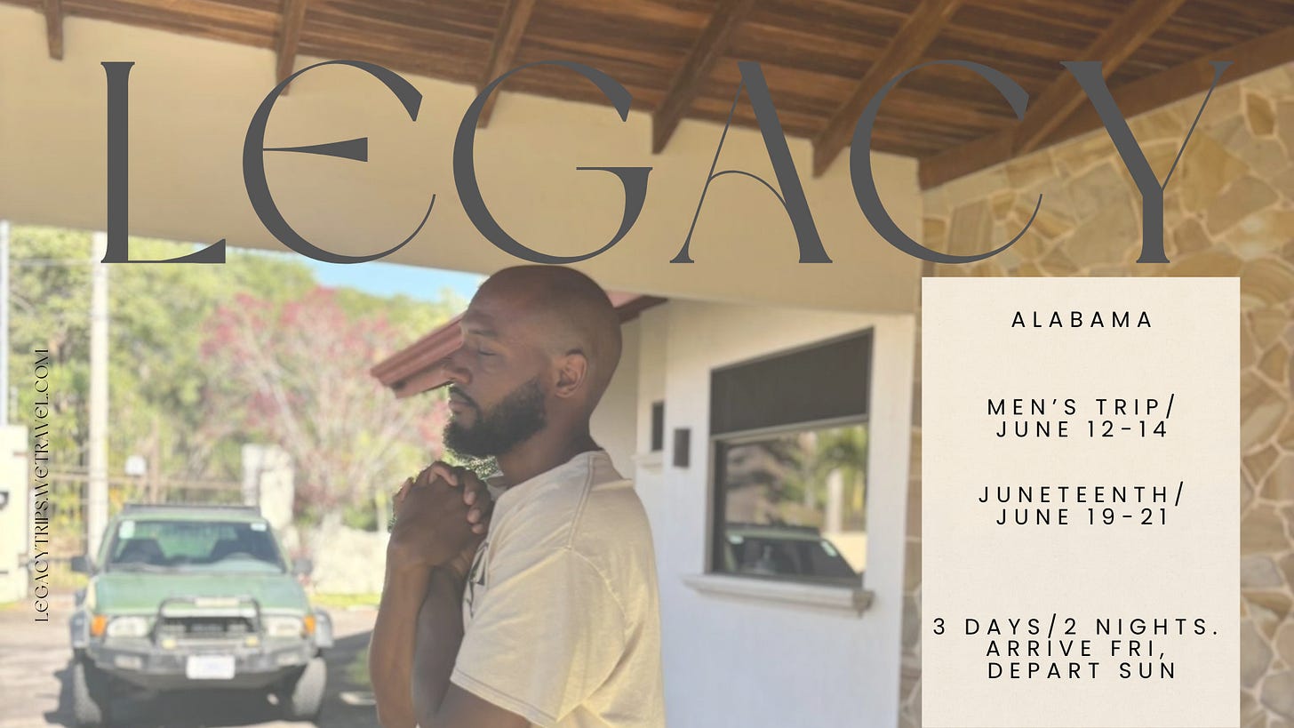 The bit longer story is that in late 2024, I announced that I would no longer be offering Legacy Trips. The year had just taken too much from me, likely that year took too much from all of us. My nephew was lynched. Our family dysfunction prevented any opportunity to fight for justice and we were left with our broken hearts in our hands, nowhere else to turn and nothing else to do but be sad and Black. I never imagined that after leading scores of people through the lynching memorial in Alabama over the course of 7 years, that I would one day walk in the literal shoes that thousands upon thousands of Black families walked who have mourned the loss of their loved ones to lynching...a story told at the lynching memorial, now my own personal family trauma in addition to our collective trauma and what the ancestor Ida B Wells calls the ‘national crime.’